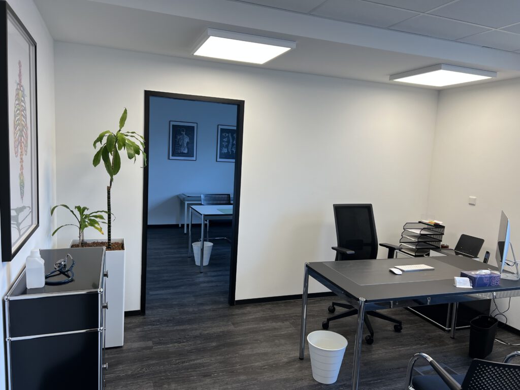 Großzügige, lichtdurchflutete Räume, moderne LED-Beleuchtung und hochwertige Materialien verleihen der Praxis ein helles, offenes und freundliches Ambiente.