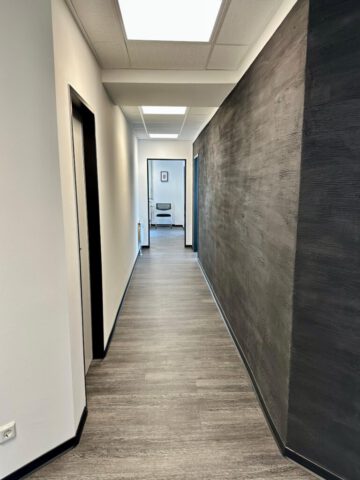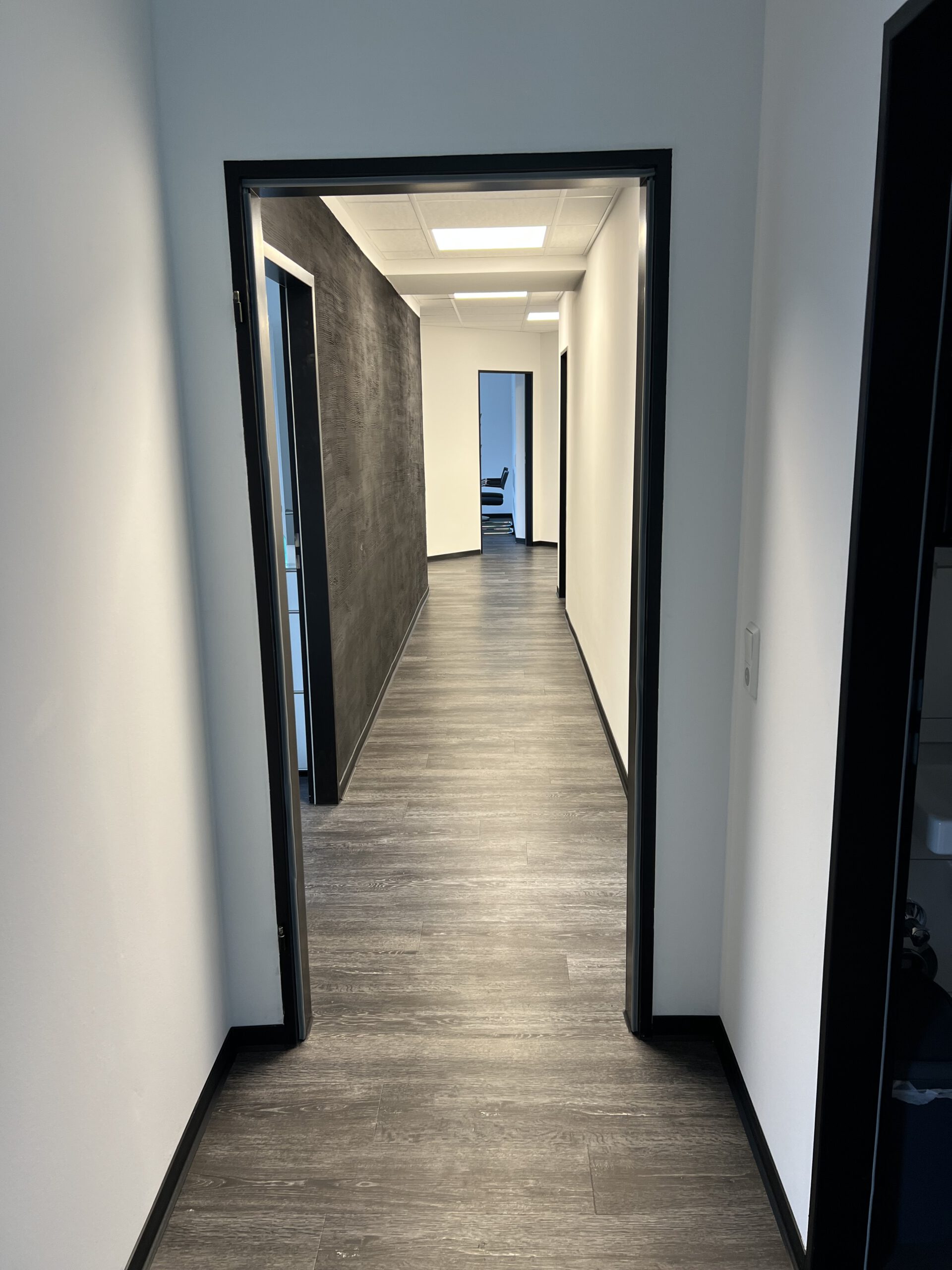 Großzügige, lichtdurchflutete Räume, moderne LED-Beleuchtung und hochwertige Materialien verleihen der Praxis ein helles, offenes und freundliches Ambiente.